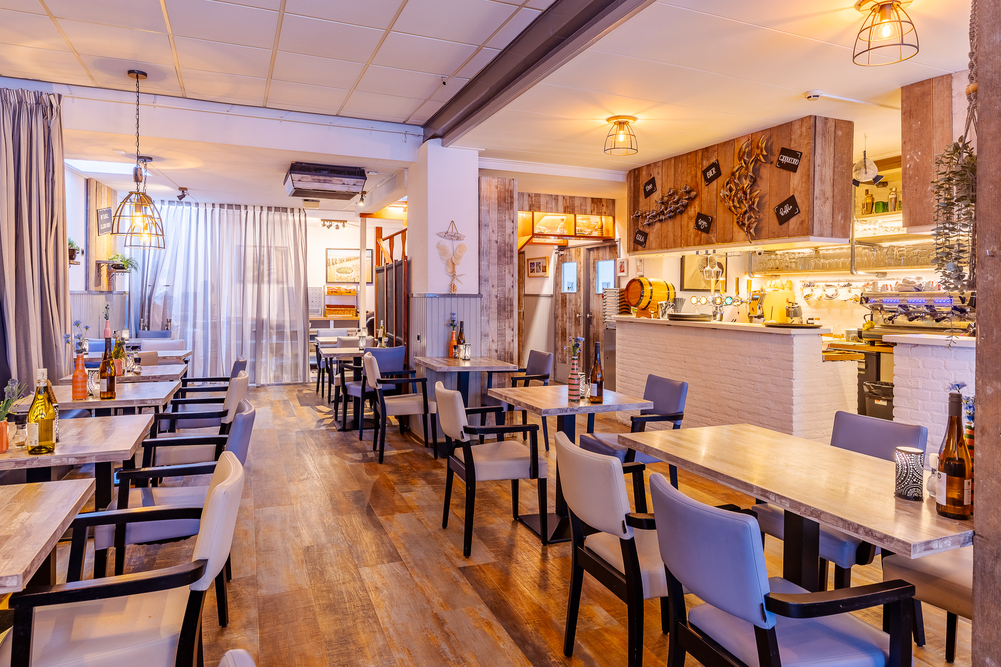 Die Weinkarte kann sich sehen lassen und bietet neben der internationalen Auswahl auch einen überraschenden Wein vom Weingut „De kleine Schorre“ auf Schouwen-Duiveland. In der Lounge können Sie den Tag nach einem herrlichen Tag am Strand bei einem guten Wein ungezwungen ausklingen lassen.